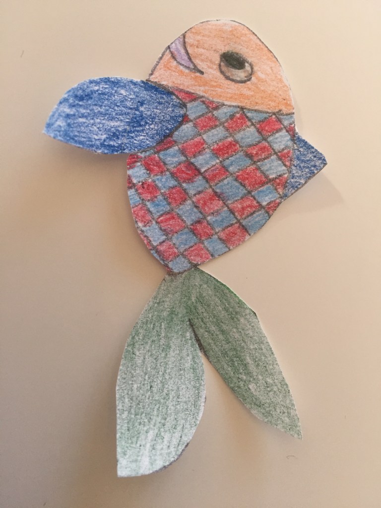 Vous dessinez votre poisson en vous servant de votre créativité, vous le coloriez, le scotchez et le collez à la personne de votre choix. Et après, (pour ceux qui ne connaissent pas) vous dites à la personne : Poisson d’avril!!! Hihihi!